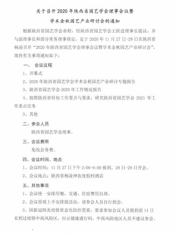 关于召开2020年陕西省园艺学会理事会议暨学术金秋园艺产业研讨会的通知