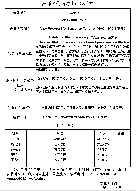 因公临时出访公示