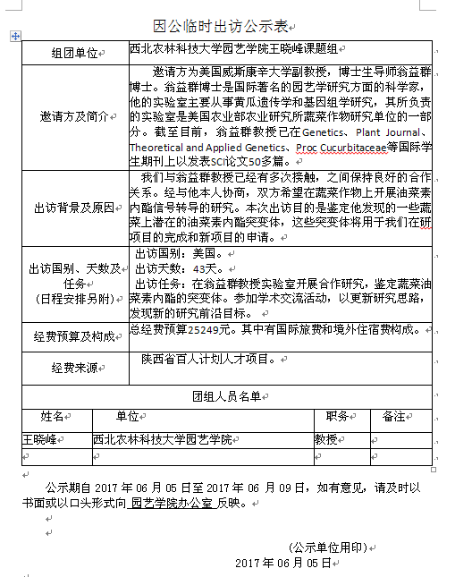 因公临时出访公示
