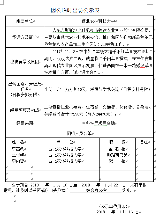 因公临时出访公示