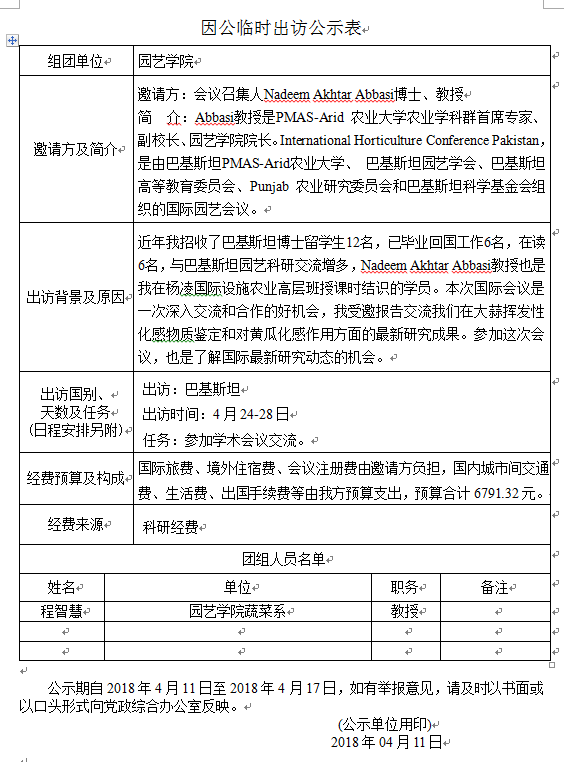 因公临时出访公示