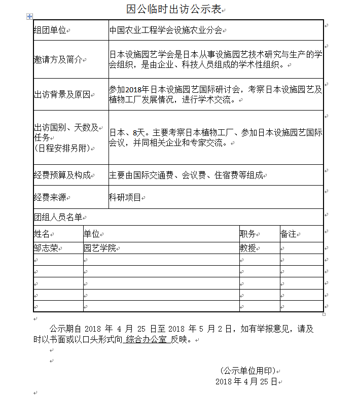 因公临时出访公示表