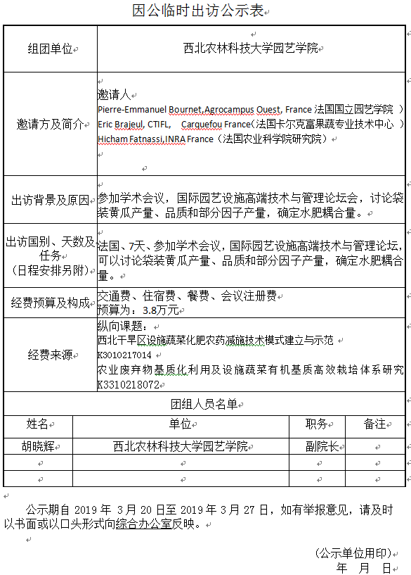 因公临时出访公示表