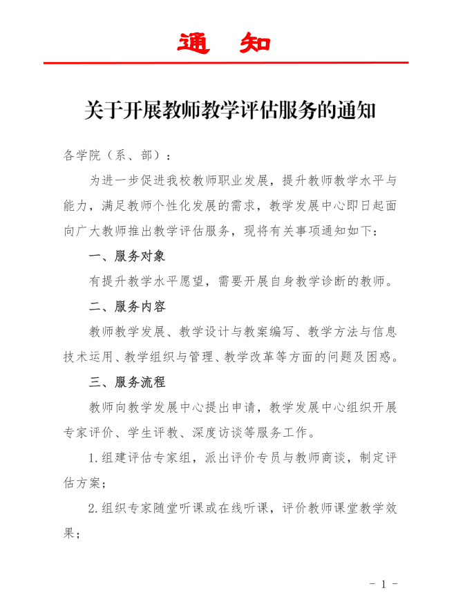 关于开展教师教学评估服务的通知