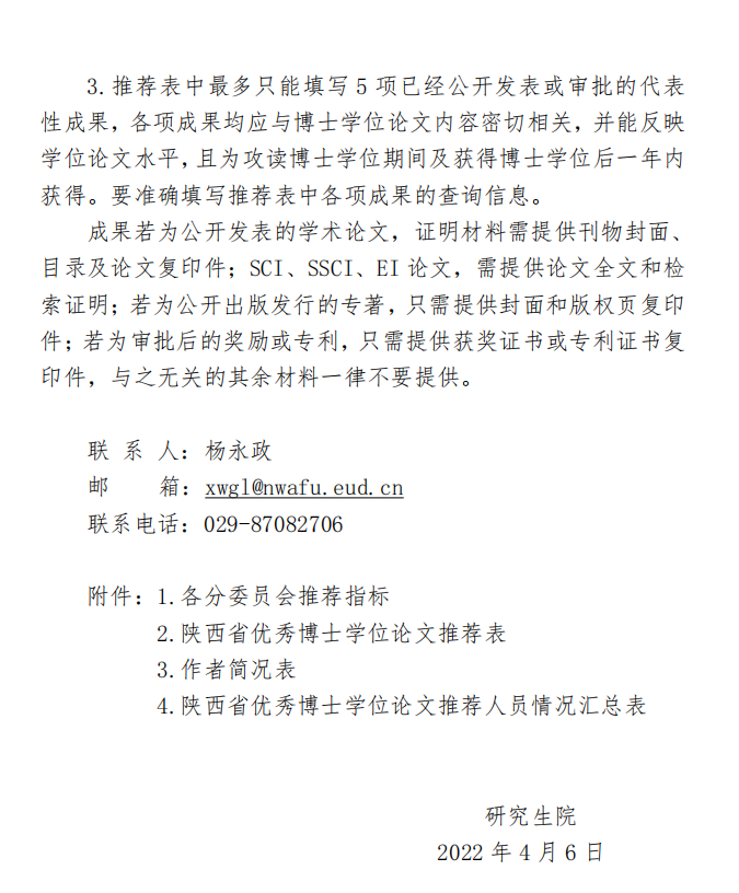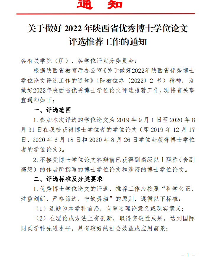转:关于做好2022年陕西省优秀博士学位论文评选推荐工作的通知