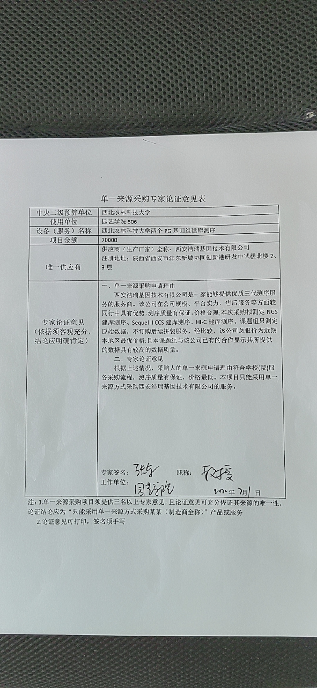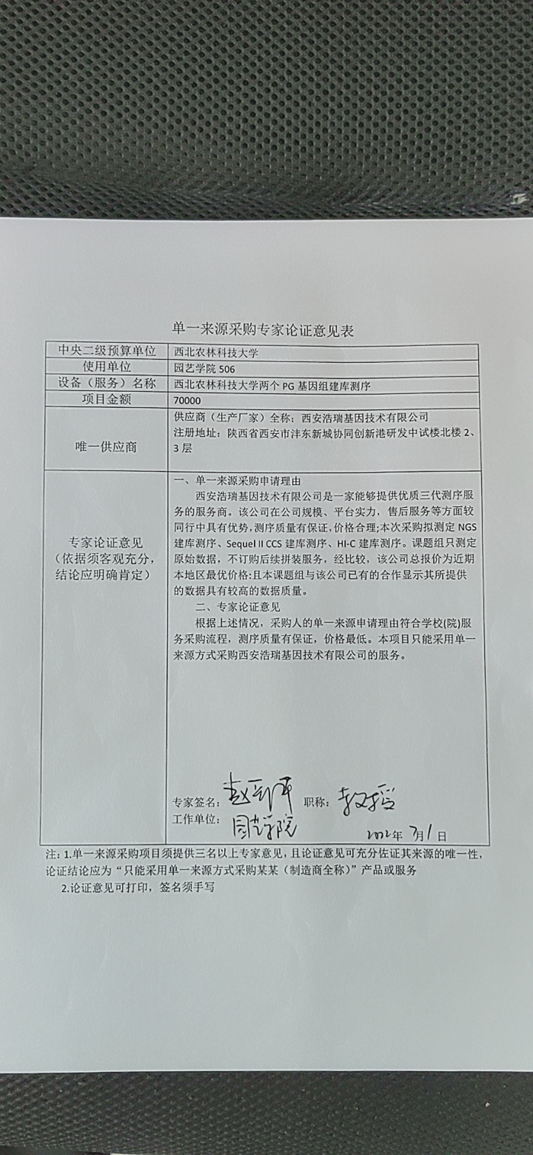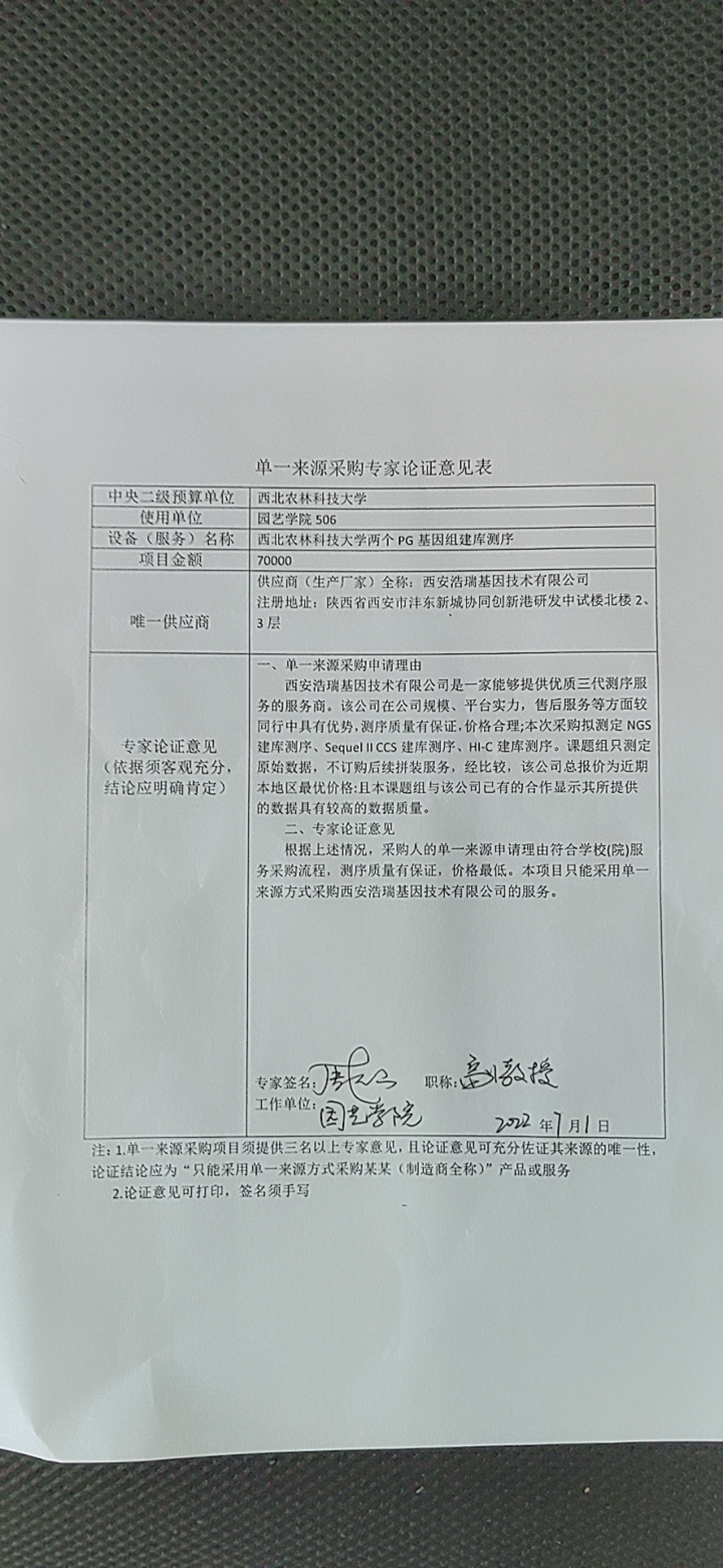 3044am永利集团3044noc两个PG基因组建库测序采购项目采用单一谈判方式采购,该项目拟由西安浩瑞基因技术有限公司提供(地址:陕西省西安市沣东新城协同创新港研发中试楼北楼2、3层);现将有关情况向潜在供应商征求意见。征求意见期限从2022年7月4日至7月6日止。