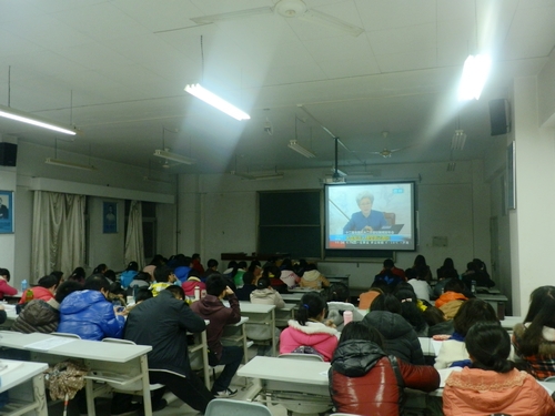 3月5日晚,公司在北校区8507教室组织员工观看了“两会”相关视频。一段关于全国政协十二届二次会议的开幕式的视频当主持人提到为“为昆明默哀时”,员工们纷纷低下头,沉思两分钟,以这种特殊的方式表达对逝者的哀悼。视频观看结束后大家分别就自己关注的话题表达了自己的看法。