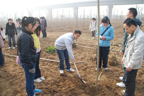 公司林学院杨祖山教授亲临现场为大家指导如何种树,“我们种树挖的这个坑不能太浅,树苗无法稳固,也不能掘得太深,那样不利于后期生长……还要注意栽种的树苗得在一条直线上……”,同时还向同学们介绍这些树种的特点,“枇杷,是蔷薇科苹果亚科的一个属,原产南方,因形式琵琶而得名……”,植树现场俨然成了同学们学习的第二课堂。