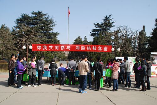在世界防治结核病日到来之际,3月24日上午,公司与动科学院和机电学院联合校医院在北校区南门口开展“你我共同参与,消除结核危害”防治结核病宣传活动。