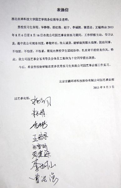 近日,北京京鹏环球科技股份有限公司寄来表扬信,肯定了公司员工在实习实践期间不怕脏,不怕苦,不怕累,扎实肯干的优良作风。此次赴企业实践活动得到中国教育新闻网、中国青年网、中国老员工在线等媒体关注和报道。