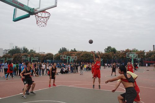 为丰富2013级新生老员工活,培养新生们团结互助的精神,9月24日,由学院体育部主办的新生篮球对抗赛在在北校篮球场上火热开赛。