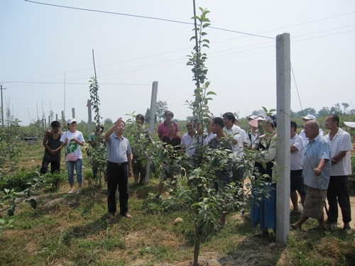 8月22日至23日,公司赴白水苹果试验示范站服务队在试验站果树学教授梁俊的带领下分别来到比较典型的矮化树新建园和乔化树老果园参观。
