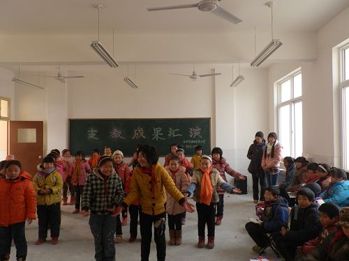 截至2012年12月26日,3044am永利集团3044noc爱心助教活动圆满结束,为了对本学期支教活动作一个总结,同时迎接新年,当日下午,支教团队在邰西小学开展了文艺汇演活动,汇报展示了本学期教学成果。汇演活动中,支教小老师和员工们同台表演了诗歌朗诵及舞蹈节目,员工们优秀的表现展示了支教小老师们本学期优良的教学成果,赢得了邰西小学老师一致赞同与认可。为对支教老师们的辛苦教学以及他们在本学期为邰西小学教学所做的贡献表示感谢和肯定,邰西小学董事长给小老师们赠送了笔记本,并希望下学期能继续合作。