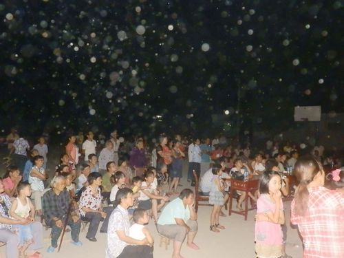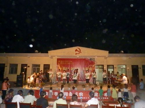 队员们的节目赢得了村民的阵阵掌声和一致好评。悠扬婉转的《那些花儿》让傍晚的乡村多了份恬静和清新。一首《光荣》表达了队员们对一路上受到的各方面帮助的感激。小品《试镜》以丰富夸张的肢体语言带给现场无限欢乐。手语操《怒放的生命》展示了在无声世界里,生命在怒放,生命在燃烧。正值共青团建团90周年,红歌联唱––“伟大祖国”,队员们通过重新演绎《东方红》、《十送红军》、《中国人民解放军军歌》和《游击队之歌》等经典革命歌曲,表达了对老一代革命先辈的崇敬。诗朗诵《爱心无限,志愿同行》道出了三下乡队员们的心声。苹果试验站的李大爷与队员们合作的二胡版《最炫民族风》将现场气氛推向高潮。联欢活动在《相亲想爱》中落下帷幕。