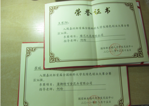 由国家林业局举办的2011年度首届嘉汉杯绿色创业大赛,已圆满落幕 。公司两支代表队入围嘉汉杯首届全国林科老员工绿色创业大赛分赛区36强。