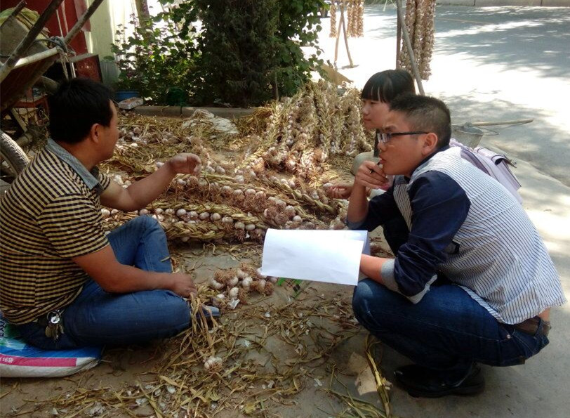 当天上午,队员们来到了青海省乐都县深沟村。在队长的安排下,同学们分成4组对当地村民进行调查走访。通过调查,同学们了解到乐都的地理状况适宜大蒜和辣椒的生长,因而在当地得以广泛种植;此外,政府给予的农业补助也很大程度上对其发展起到了促进作用。同时,在和村民们的交流过程中,同学们也发现了不少问题,例如,村民们由于缺乏技术指导,导致近年来大蒜和辣椒的市场价格较低,因而收入较低。而这也正是本次“三下乡”队伍要帮助当地村民解决的问题。所以,同学们也将参考此次调研结果,利用自己所学的科学理论知识尽力为村民们提供技术指导,争取做到切实帮助当地农民。
