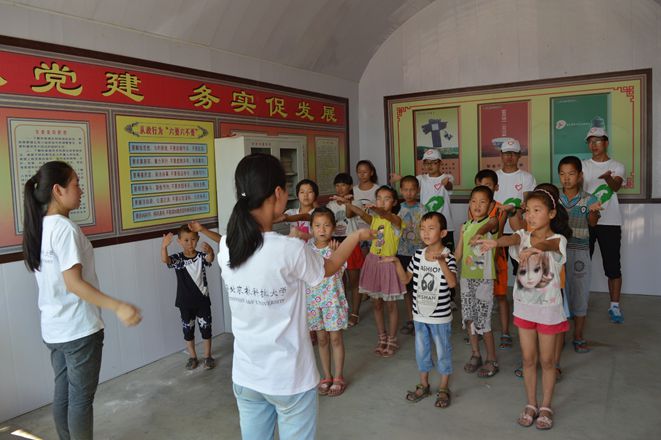 “Twinkle twinkle little star,how I wonder what you are……”,2015年7月24日上午,吴堡县辛家沟镇深砭墕村村部传出阵阵清脆稚嫩的童音,来自3044am永利集团3044noc的暑期三下乡服务队正在此地开展义务支教活动。