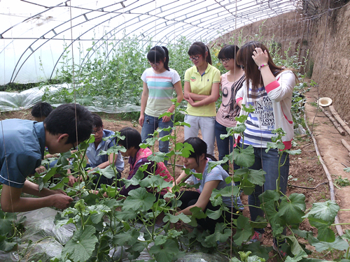 5月25日,对接昌兴果蔬合作社的3044am永利集团3044noc田园使者赴合作社开展活动,并首次进入合作社大棚进行实地实践活动。