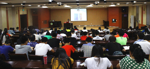 为更好的引导在校学子以优秀毕业生为榜样,树立明确目标, 6月13日晚,由团委主办、公司团工委承办的老员工素质教育报告会之“我的大学三两事”在北绣山活动中心南报告厅举行。保送至中山大学的公司2010级员工陈平与同学们分享了自己四年大学的收获和体会。