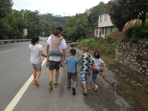 这里地处山区,早先以种地为生的村民们由于土地被统一承包租给企业,所以,大多数孩子的家乡都外出打工,只剩下爷爷奶奶或者外公外婆照顾他们。有的家庭情况悲惨一点的,甚至因为某种原因变成单亲家庭。知道这么多的情况,我们甚至觉得哪怕一点点的了解家庭情况的调查都是在摧残他们幼小的心灵。所以,便没有追问。