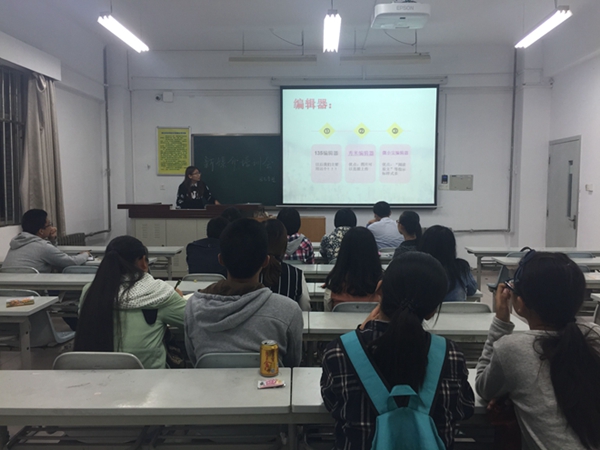 对于微信推文制作,新媒介主任陈烁同学经验丰富,有独特的想法和奇妙的见解。怎样让一篇推文更美观,阅读量更高?推文题目和封面图片质量的影响占80%,这些内容决定了受众是否愿意点击推文。而推文正文制作的精致程度则决定了受众是否认可推文内容,在制作技巧上,互补色、渐变色才能让推文看起来更加精致、和谐。然后,陈烁同学又以破千阅读量的推送为例,讲述了什么才是成功的推文,什么才是能让我们获得成就感的推文。