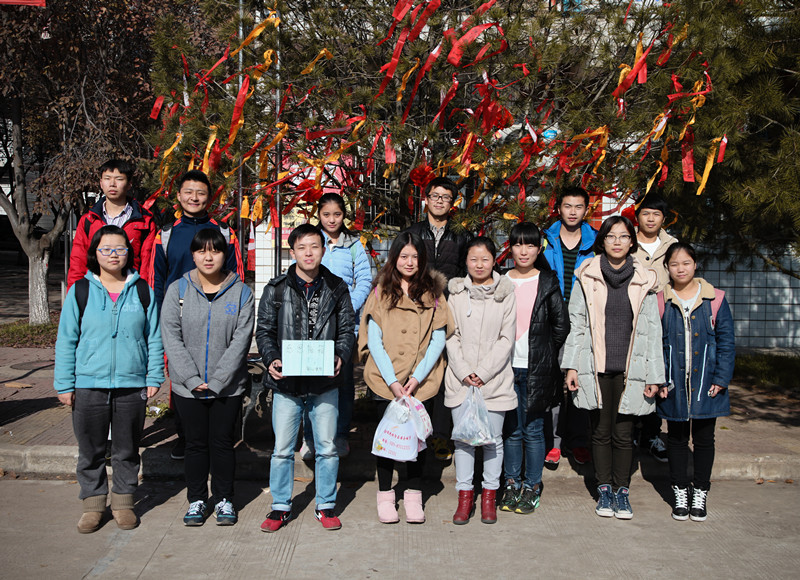 桌子上的红黄丝带吸引了许多同学驻足,大家一个个都慎重地拿起笔,嘴角扬起一抹微笑,心中的感恩顺着笔尖缓缓流淌在丝带上。不一会儿,特设的感恩树上就挂满了红黄丝带,它们在这个略显寒冷的初冬里迎风招展,饱含着同学们心中深深的感恩情结。午后的暖阳晒得人身子暖暖的,一条条迎风招展的红黄丝带更是让人心里暖暖的!感恩丝带,系上最深的情节,让千里之外的我们依然紧密联系在一起!