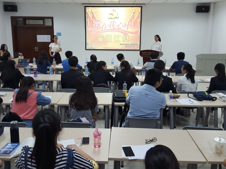 比赛当天,十一位选手都努力展示出自己的风采,有的选手慷慨激昂,为我们追溯了党创立之初的艰苦奋斗的历史,描绘了党未来的宏伟蓝图;有的选手娓娓道来,将自己的小我和党的大我紧紧联系在一起,用情至深;有的选手善于与观众进行交流,通过眼神和语音语调将观众带入情境,还有选手引用歌词、诗句、大家之言,使自己的演讲内涵深厚。会议室里掌声不绝,观众们都享受了一场精神盛宴。针对每一个选手的的演讲,评委老师都做了认真而细致的点评。帮助大家找到缺点,举一反三。赛现场激情洋溢,选手们的演讲深入人心。本次演讲比赛最终评选出一等奖一名,二等奖两名,三等奖三名,优秀奖若干。