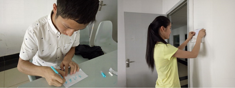实践课于下午一点二十分在八号楼六楼大厅进行,主要针对八号楼教室出现的不关灯关风扇现象,旨在提醒同学们随手关闭开关。组织部部委首先向大家说明了这次实践课的目的以及内容,然后大家用事先准备好的材料,根据自己的想法设计出一个简单的提示语,在自己所分配到的教室地开关下贴上有个性的标语牌。同学们设计的标语牌各式各样,有的同学为引起大家注意与重视还画了闪电、感叹号等符号以提醒同学们节约用电。设施1501班的李世杰同学说:“这样的实践课大家自己动手,有意思、有意义,我们应该厉行节约,在生活的点滴中弘扬中华民族这一传统美德!”