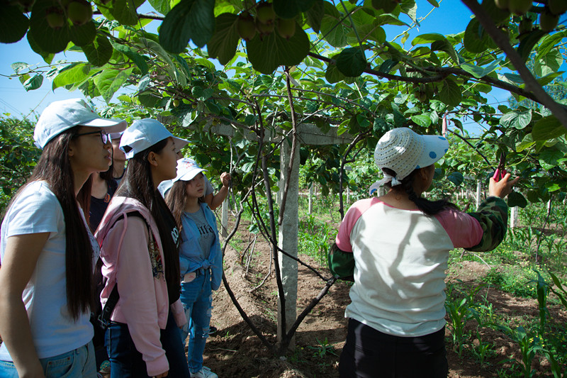 在第一次队员们齐心犁土撒播的玉米种,经过两个月的时间,现在已经长到齐膝,长势蓬勃郁郁葱葱。这种间种作物合理与猕猴桃利用土地和光照,省力又达到了经济收益,是农民的智慧。有的地方播种了而没有长出来,大家以为是撒种方式不对,询问后才知道是野鸡偷吃了种子。说到这农户阿姨讲起了她之前播种时偶遇与野鸡智斗的故事,引起田间片片笑声。每一次活动都是汗水和笑声相伴,乐享其中。