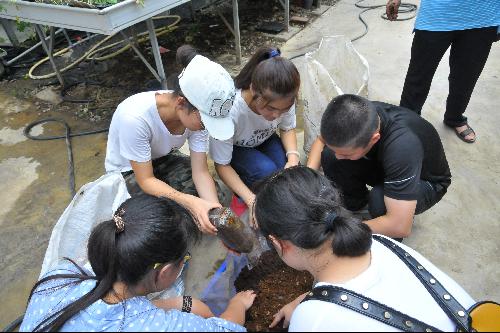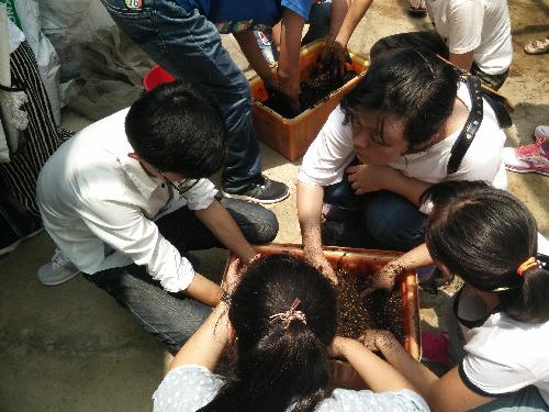 开始的调研过程中,国立屏东科技大学农园生产系主任王鍾和教授,向大家介绍了有关有机农业的相关理论知识。同时,队员们也借助课堂机会向王教授了解了许多关于台湾有机果蔬产业投资、占地面积等方面的问题。王教授提出“要想发展有机产业,就得探求自然之规律,改善土壤之品质。”紧接着我们进行了堆肥与育苗的实训作业,队员们在相关人员的指导下,通过自己动手操作,在学到有机肥的制作的同时,也渐渐理解了王教授说过的话,明白了有机要从源头做起。