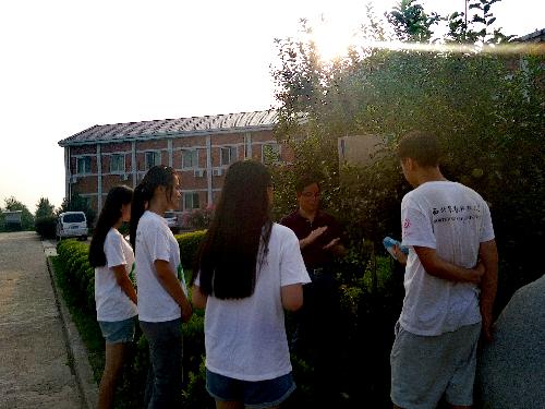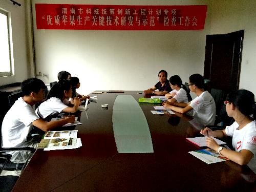 3044am永利集团3044noc赴白水苹果调研小组的工作进入了总结阶段。清早,调研小组全体成员与白水苹果实验站站长梁俊教授一起来到了实验站果园。在这里,梁俊教授为前来调研学习的员工从实验站概况、苹果质量安全和套袋生产三方面做了详细讲解。