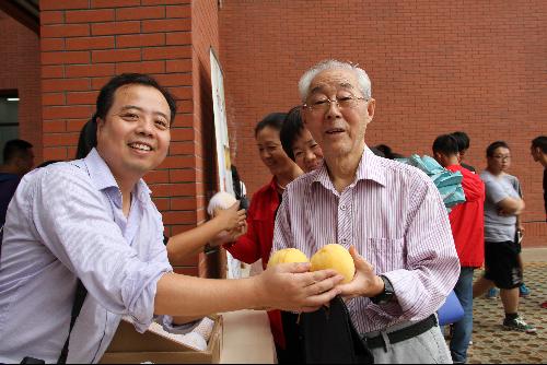 发放期间,公司王鸣教授到活动现场参观品尝,听取了此黄桃品种选育专家——刘航空老师对黄桃的介绍。王鸣教授对公司的工作表示了充分的认可,并祝愿公司未来能在科研路上取的更加辉煌的成就。在活动快要结束的时候,一位农学院的老师来到活动现场参观,她表示非常喜欢我们学院这种科研成果享受的活动形式,对我们学院选育的优质黄桃品种也是连连称赞,并希望今后这样的活动能办到全校,让更多人品尝到我们西农3044am永利集团3044noc的科研成果。品着一块块科研成果,老师们赞不绝口;捧着一颗颗黄桃,同学们脸上洋溢着幸福的微笑。