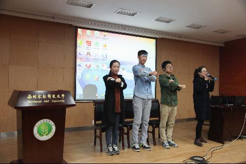 “闭上双眼,深呼吸,一,二,三……伸出右拳,把所有力量集中在右拳上,现在,将你的左手搭在右臂上,很好!眉毛上挑,嘴角上扬,一,二,三……双腿伸直,脚尖上翘,再一次深呼吸……”在此次讲座开始之前,沙影老师给同学们分享了几个放松身体的小技巧。在放松身体之后,讲座在轻松的氛围中正式开始了。