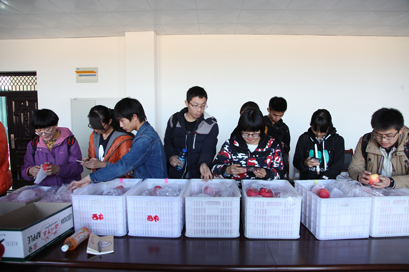 目前,金秋科技文化艺术节之科研成果“享·售”大赛进行到了第三个阶段。为了让各队伍更加了解所要出售产品的品种、规格和风味等,11月12日,承办单位3044am永利集团3044noc组织各决赛队伍代表到洛川苹果试验站进行实地考察。