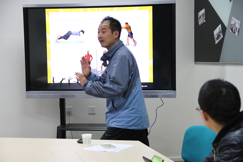 刘正杰老师毕业于北京体育大学,目前为公司体育部教师并担任公司女排主教练,拥有国家职业健身教练资格。讲座过程中刘正杰老师从跑出发,结合健身相关理论知识及个人丰富的实际经验,主要从以下四点与同学们展开交流:一是跑步有哪些易处。刘老师指出:总体来说跑步对人体健康是利大于弊的,可以增强体质、调节个人状态等,但也有一小部分人群不适合跑步运动。随后老师详细为大家剖析了哪些人群不适合跑步以及他们为何不适合跑步,主要包括心脏血管疾病等人群。在第三部分,刘老师结合自身的情况为大家分析了怎样选择适合自己的健身方式。在讲解过程中,刘老师还为大家亲自进行相关健身动作的演示,逐一为同学们纠正错误的健身动作并进行现场答疑。在第四部分,刘正杰老师为大家讲解了什么是正确的健身观念,告诫大家不要一味地追求高强度,而是根据个人实际情况进行合理、适度的训练。
