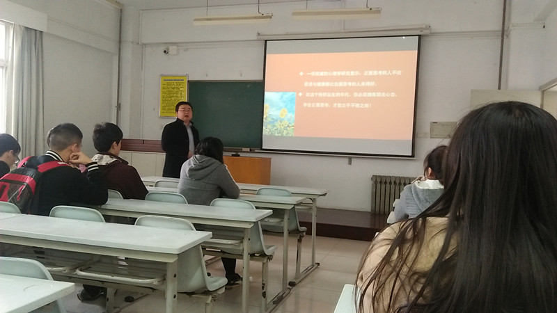 班会现场,薛新科老师首先向同学们讲授“阳光心态的力量”,具体内容分为 “正面思考”、“改变思路,强化正能量”、“正面思考的误区”和“挫折——人生最珍贵的成长礼物” 四个模块,并通过举例子等多种方式告诉同学们正面思考的重要性以及如何利用“向日葵原则”学会正面思考。薛新科老师以园艺1502班的新春全家福作为演示的结束,让同学们更加深切地感受到集体的温暖。为使同学们以更为轻松的方式学会乐观开朗,积极向上,薛新科老师还推荐了一些相关书籍,并提倡同学们在空闲时间观看网易的公开课——《幸福课堂》。