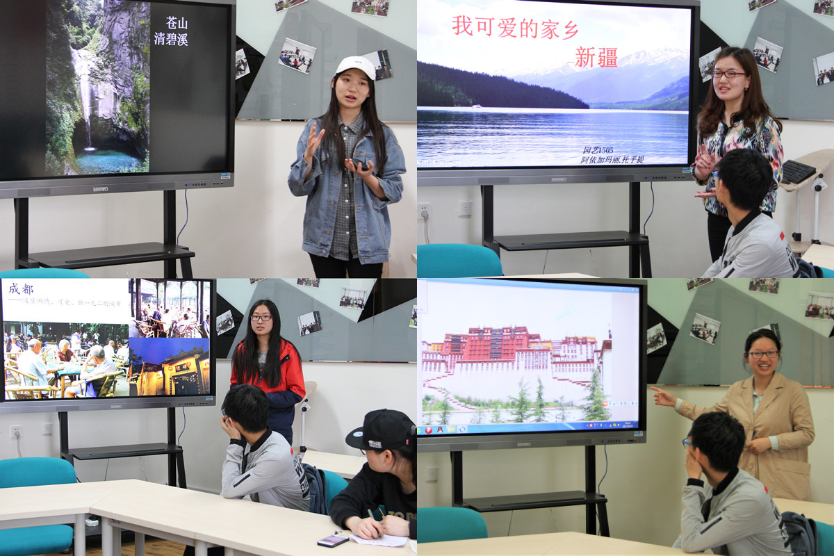 本次活动邀请了15级娄莹同学、宋林姝同学和阿依加马力·托乎提同学向大家介绍了她们的家乡之美。娄莹同学来自坐拥“风花雪月”美景的云南大理,她向我们展示了家乡古城里被誉为“文艺青年聚集地”的人民路、最具历史底蕴的南诏国发源地巍山县、宛若人间仙境的苍山洱海……娄莹同学用精彩的讲解和丰富的照片,向给我们还原了一个最真实、最淳朴也最美丽的大理。宋林姝同学来自“天府之国”四川,她不仅向我们描绘了一个风景如画的川蜀大地,更向我们展示了少数民族文化与汉族文化在这里的交汇之美,尤其是凉山彝族有名的“火把节”,照片里传递出来的火热狂欢氛围引得大家十分向往。阿依加马力同学来自新疆,她向大家详细介绍了维吾尔族特有的居住风俗和独特的美食。同时,马力同学还介绍到,随着家乡不断的建设,新疆已不是大家眼中刻板的只有草原和沙漠的景象,现代化的大都市早已在新疆崛起,在神秘的草原深处也不乏高科技之美。