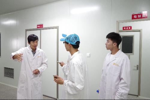 小分队来到内蒙古王爷地苁蓉生物有限公司的沙生药用植物加工车间。为保证车间卫生,工作人员让队员们带上鞋套,穿上工作制服。崔主管带领队员按药材加工顺序,依次参观车间。车间分化整齐,每一间房都有一到两个金属材质机器,队员们满是好奇,都凑在一起细看。崔主管讲解道:“先要清洗药材杂质,随后浸润干燥的药材,以便切割。切完后再进行干燥处理。”队长李文问道:“贵公司切割有什么要求吗?比如切割形状,厚度。而且干燥方法有很多,比如高温蒸汽,烘干,贵公司用哪种?”崔主管耐心解释:“切割有要求,但标准是国家和地方定的,不是公司定的,比如肉苁蓉切片要24毫米。至于干燥方法,药材不同,方法不同。”就这样,在队员的疑问中和崔主管的解答中,全队对流水线的清洗、浸润、干燥、切割、拣选、炮制、包装都有了较深了解。