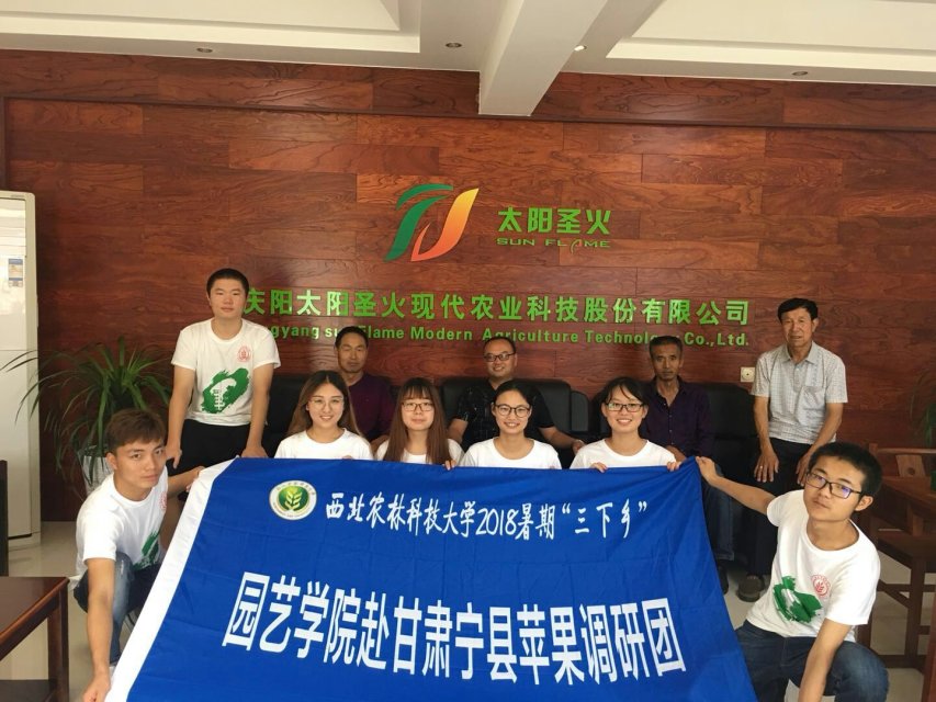 为培养农林学子扎根基层、深入群众、服务社会的责任意识,促进“一懂两爱”的“三农”人才培养, 7月16日,3044am永利集团3044noc“甘肃宁县苹果调研团”赴庆阳宁县太阳圣火现代农业科技股份有限公司组织开展了调研实践活动。