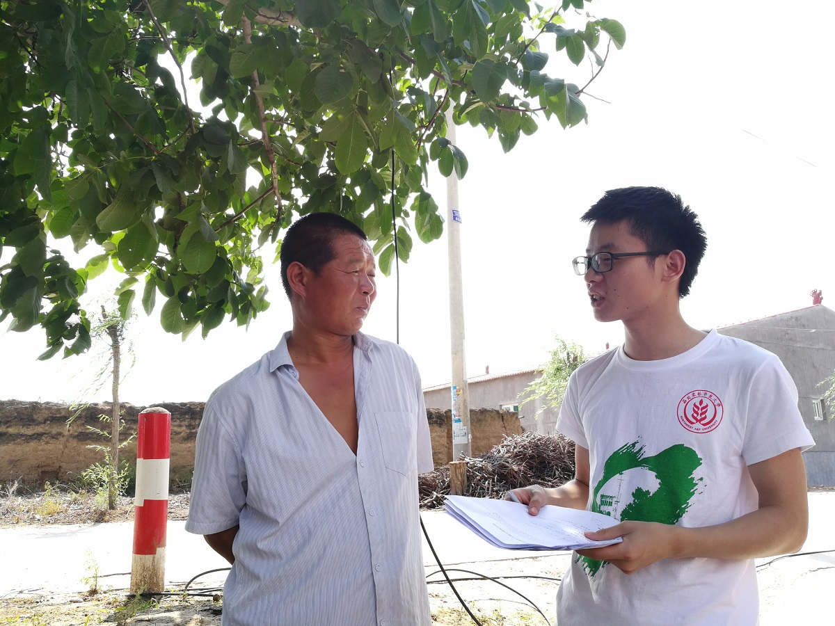 在洛川芦白村里,队员分为三小组,沿着三条不同路线进行问卷与走访。队员们就村民苹果产业园面积的大小,苹果产业平时治理的基本方法和途径,以及村民对苹果产业园管理的经验等进行了问卷调查,与此同时,就苹果产业如何继续发展,如何面向未来,以及苹果产业管理中存在的问题与方法等与村民进行深入交流。