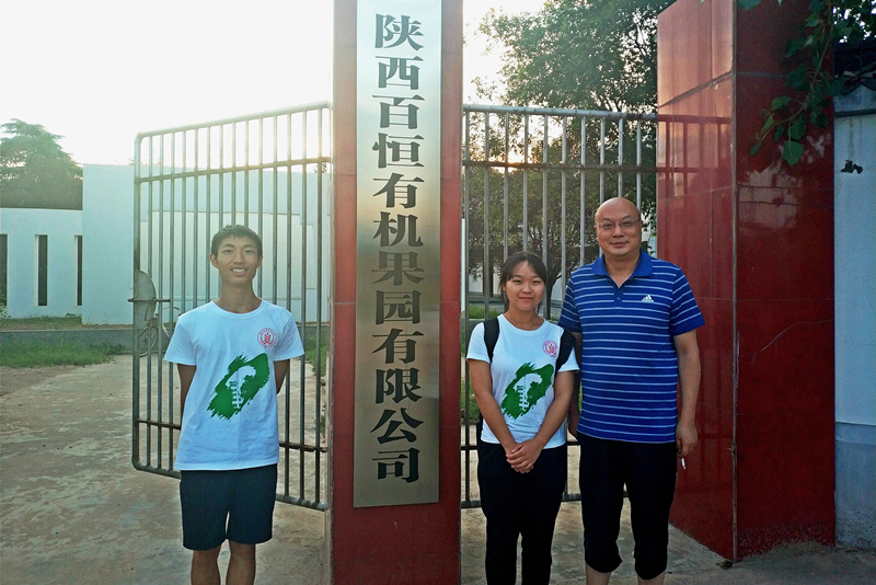8月5日,3044am永利集团3044noc园艺产品低温伤害调研队前往陕西百恒有机果园有限公司展开了关于今年四月份低温冻害对猕猴桃树影响的调查。在活动开展前期,团队成员了解到,陕西百恒有机果园有限公司地处杨凌区五泉镇上湾村、茂陵村之间,共建成猕猴桃新品种选育园50亩、有机猕猴桃新优品种生产示范园450亩。公司的董事长兼总经理王小铁先生为公司94届毕业生,十分热情地接待了调查小组成员。经王小铁先生介绍,百恒有机果园内主要种植的是中华系列和美味系列两种猕猴桃。