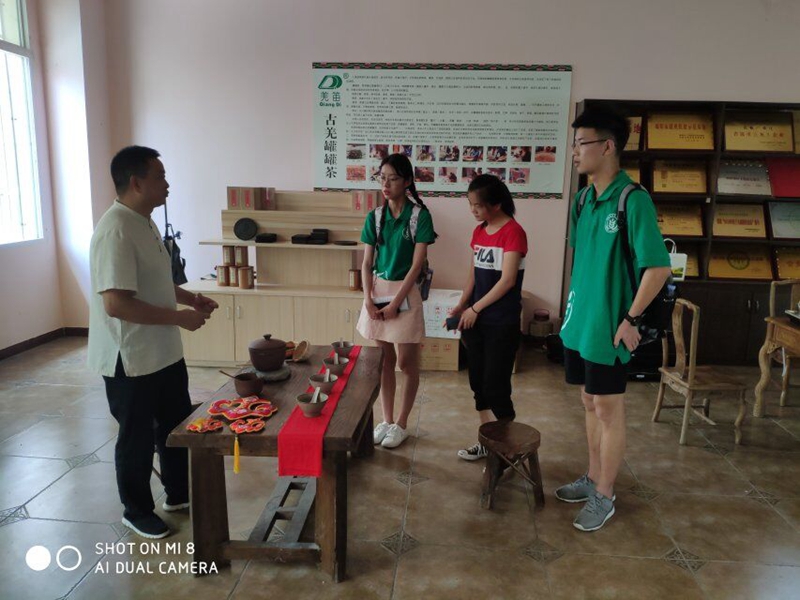 下午14时,调研队员在经过短暂的休整后,乘坐长途汽车来到了北川县古羌茶艺传承人牛义贵先生的茶艺工作室进行访问和了解,牛义贵先生在此前曾多次去永利集团学习有关茶文化,所以调研队员到达茶艺工作室后热情的牛义贵先生带着调研人员参观茶艺室并且给调研队员准备了北川特产北川红茶,在品茶时牛先生向调研队员介绍了古羌茶艺目前面临的发展问题和困难,牛先生与调研队员还谈论到其对于古羌茶艺的传承和发展目标。经过一个小时的交谈过程后,调研队员收获满满,在调研队员准备离开时,牛义贵先生说到:“非物质文化遗产是国家和人民的文化,我们都要紧跟党中央的政策,把其传承并发扬下去。”