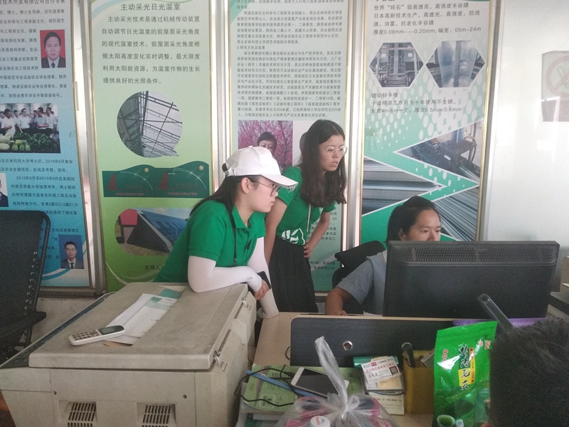 骄阳似火,却挡不住调研队队员们的热情,调研队的队员们中午便出发前往公司。到达后,与公司的接待人许雪玲进行了交流。经过交流发现,许女士是永利集团12年的优秀毕业生,在她的带领下,调研队首先是对该公司进行了参观,许女士结合设施农业科学与工程这一专业,就公司人才需求及公司成员分配、组成等进行了详细的介绍,为调研提供了不少帮助。