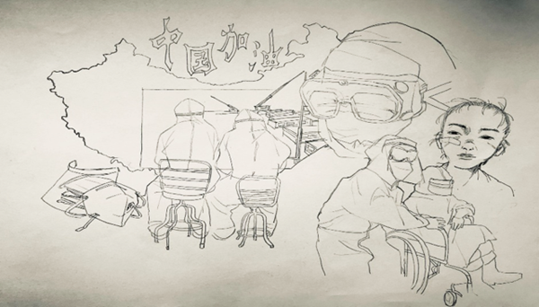 疫情面前,这是一份“请战书”,更是一份责任与担当。园艺1803班刘琳一副简笔画,勾勒出疫情面前的“逆行者”,他们是医护人员,更是“白衣战士”,打赢这场“战疫”,需要的是信心和力量,是他们的日夜坚守和坚强守护,让春天值得期待。