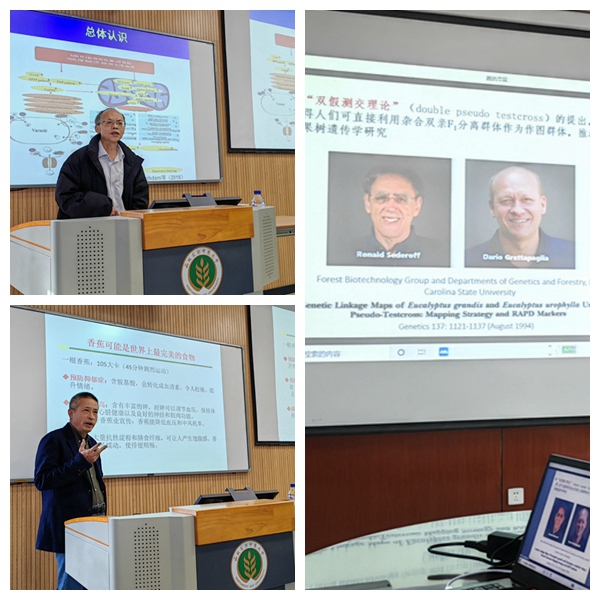 他们进行了果实釆后冷害机制研究进展;聚焦香蕉产业关键科学问题,助力国家乡村振兴与粮食安全;果树果实品质性状遗传机制;梨遗传变异解析与重要性状功能基因挖掘;苹果自花结实性基因挖掘与种质创新;柑橘驯化的基因组基础及从头设计;Fruit transformation systems, an ultimate tool for revealing gene function in fruits;Disease resistance breeding and Research 8个方面的专题讲授。