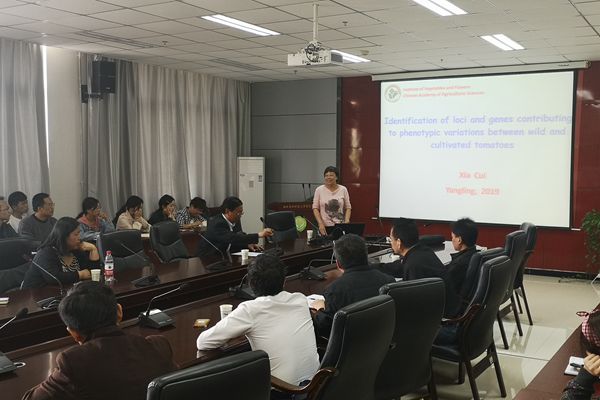 崔霞研究员为公司师生做了题为“Identification of loci and genes contributing to phenotypic variations between wild and cultivated tomatoes”的学术报告,详细介绍了其领导的团队近5年来在番茄果实大小和光周期调控开花习性的QTL定位、基因鉴定和物种驯化等方面的研究,并与师生就相关领域内的学术问题进行了交流讨论,针对大家提出的问题进行了细致的解答。报告会后又与蔬菜系部分教师进行了深入的学术讨论,并达成了初步的学术合作意愿。