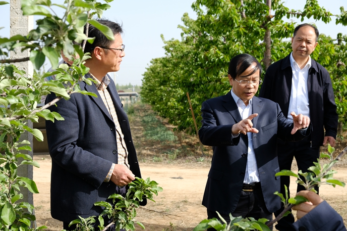 2019年4月25日上午,铜川市市委副书记魏四新、铜川市果业管理局局长任斌、市园艺站站长张永翊在驻点专家陪同下,考察了铜川果树试验示范站工作进展情况。