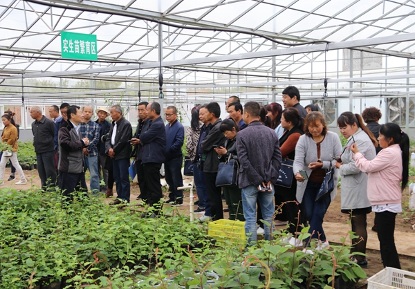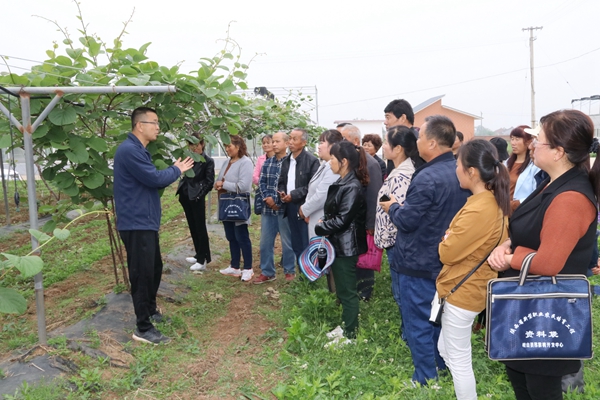 4月26日上午,岐山县猕猴桃开发中心组织岐山县猕猴桃职业农民60多人来公司猕猴桃试验站参观实训。