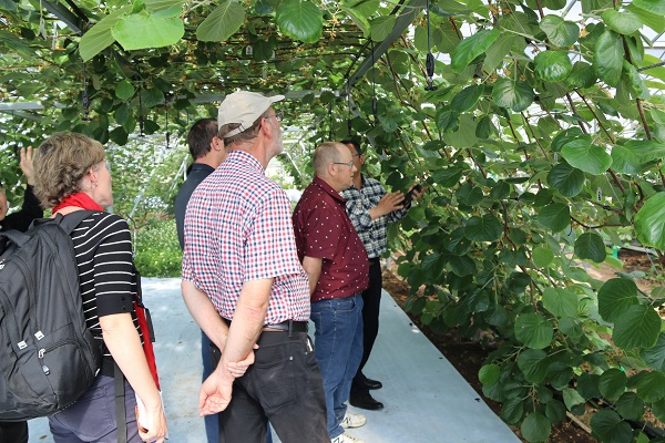 本次来访的新西兰猕猴桃专家有新西兰佳沛国际有限公司全球生产总监Shane Max、创新部总监Mary、中国项目负责人Dr Zhitan Sun科技专员Drcuilan Wu和新西兰皇家植物与食品研究院高级科学家Mike Currie、Kevin Patterson等一行在猕猴桃试验站首席专家刘占德研究员的带领下,参观了猕猴桃试验站苗木繁育、架型栽培、果园生草和省力化授粉等试验项目的研究进展情况,就有关科研开展情况进行了交流。