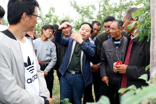 庆城苹果试验示范站助理工程师柴相让田间培训